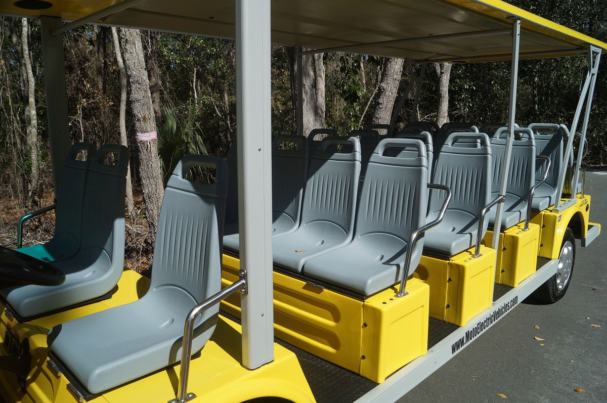 Moto Electric Vehicles released the commercial hard seat package for the 23 passenger electric shuttle on 2/1/2017. Customers in the past have requested a hard seat package instead of the normal marine grade vinyl but unfortunately there wasn’t an option available. Moto Electric Vehicles has teamed up with their suppliers to offer a new type of seating that will hold up better in heavy commercial applications.