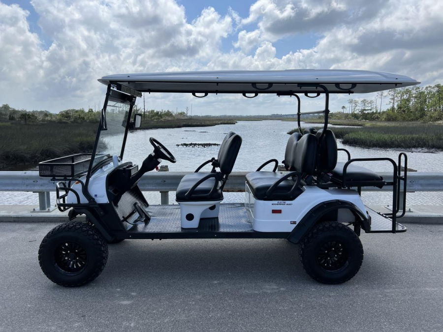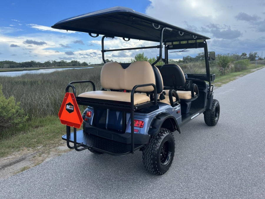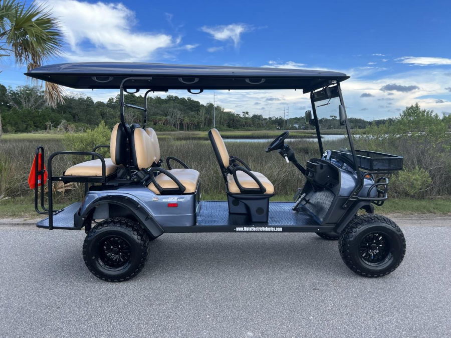The MotoEV Electro Neighborhood Buddy 6 Seater (Back to Back) HighRiser Street Legal Electric Golf Cart - Whether you're running errands or just enjoying a leisurely ride around the neighborhood, our electric carts are the perfect choice. But it's not just about practicality; our street legal golf carts are also a ton of fun. Experience the open-air freedom and enjoy a quieter ride compared to traditional transportation options. Unlike standard golf carts, MotoEV electric vehicles are perfect for exploring low-speed communities, campuses, resort areas, and neighborhoods, as well as dedicated golf cart communities and town centers. Adding our state-of-the-art makes your vehicle an eco-friendly option that leaves a smaller carbon footprint compared to other forms of neighborhood transportation. You'll fly past the competition on public highways and community streets, all while abiding by the same rules that govern low-speed and neighborhood electric vehicles. With their open-air design, our lifted street-legal golf carts can handle passengers and larger loads with ease. Experience the joy of hassle-free transportation at MotoEV.